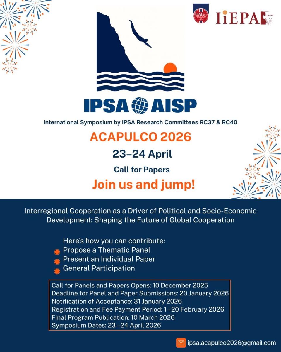Building on the vibrant energy of the IPSA World Congress in Seoul (2025), we are thrilled to announce a pioneering international symposium in the beautiful, dynamic city of Acapulco. Jointly organized by IPSA Research Committees RC37 (Rethinking Political Development) and RC40 (New World Orders?), this event is designed to be more than an academic meeting, it is a launchpad for actionable ideas and transformative partnerships.