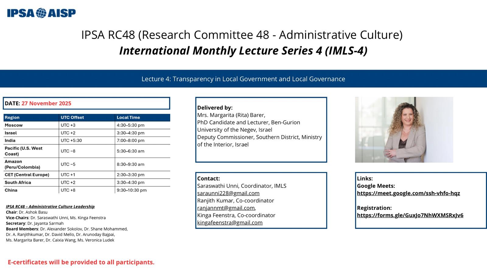 IPSA RC48's International Monthly Lecture Series-4 (IMLS-4)