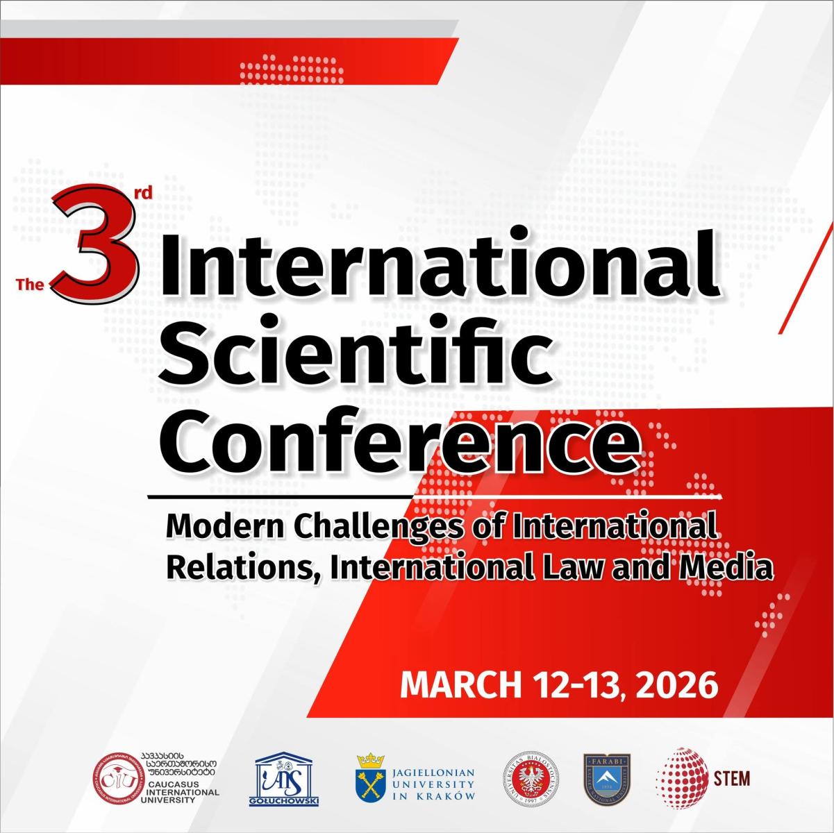We are pleased to announce a call for applications for the joint international scientific conference, Modern Challenges of International Relations, International Law and Media, organized by the Faculty of Social Sciences and Humanities and the Faculty of Law of Caucasus International University, the Department of Eurasian Area Studies of Jagiellonian University (Poland), Józef Gołuchowski University of Applied Sciences (Poland), Bialystok University (Poland), Al-Farabi Kazakh National University (Kazakhstan), and the STEM Analytical Research Center (Azerbaijan).